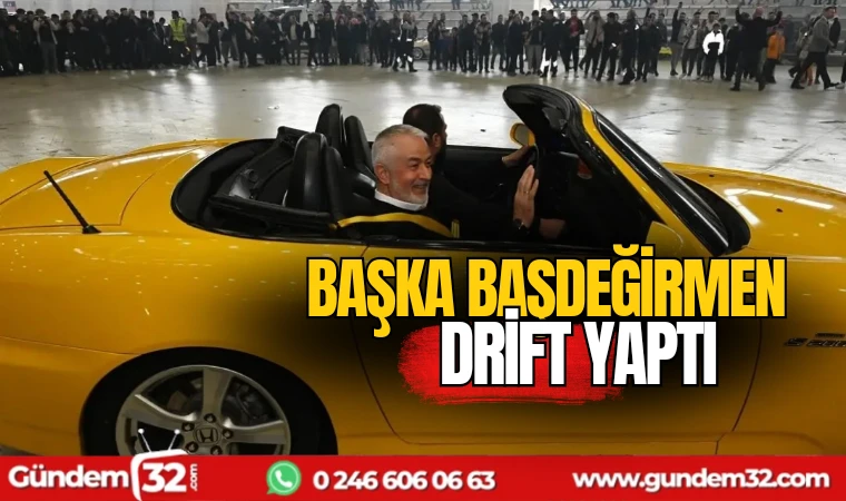 Başkan Başdeğirmen, gençlerin drift teklifini geri çevirmeyerek, gençlerin drift heyecanına ortak oldu.