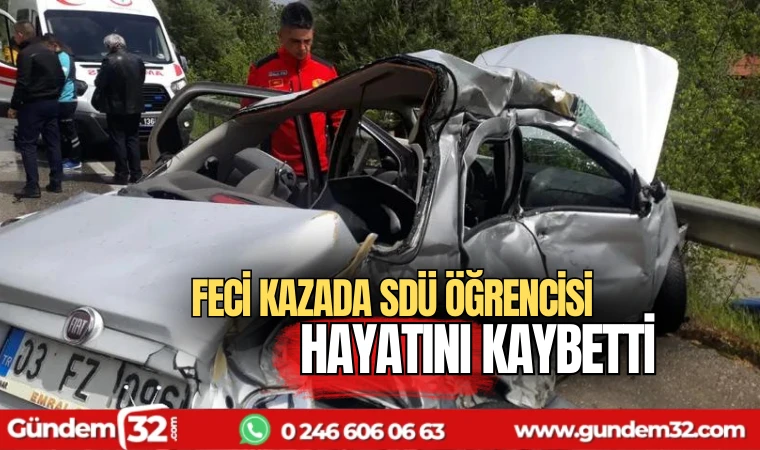 Çarpışmanın etkisiyle savrulan araç, bariyerlere çarparak durabildi. İhbar üzerine olay yerine sağlık, trafik ve kurtarma ekipleri sevk edildi. Araçta bulunan SDÜ Fen Bilimleri Enstitüsü İnşaat Mühendisliği Bölümü öğrencisi Mehmet Selim Tüzün, olay yerinde yaşamını yitirdi.