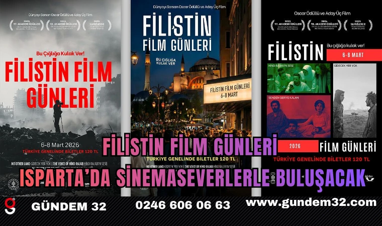 Filistin Film Günleri kapsamında filmler, Isparta’da IYAŞPARK AVM Cinemapink, Meydan AVM Cinegold ve Yalvaç Sineyıldız Sineması’nda gösterilecek.