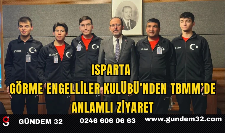 Isparta Görme Engelliler Spor Kulübü’nün yöneticileri, Türkiye Büyük Millet Meclisi’nde AK Parti İzmir Milletvekili ve TBMM Engelli Bireylerin Sorunlarını Araştırma Komisyonu Başkanı Mehmet Muharrem Kasapoğlu ile bir araya geldi. Ziyaret, kulüp faaliyetlerinin ve engelli sporcuların yürüttüğü çalışmaların değerlendirilmesi amacıyla gerçekleştirildi.
