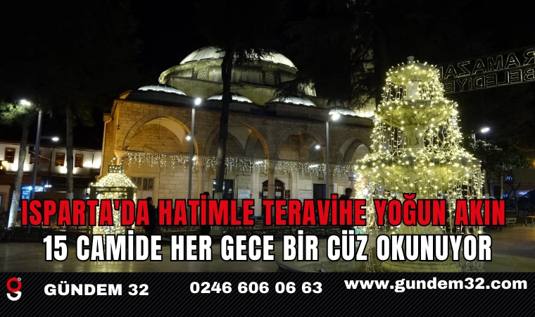 Isparta'da Ramazan ayında imamların her gece bir cüz okuduğu ve ortalama 90 dakika süren hatimli teravihler vatandaşlarca yoğun ilgi görüyor. Hatimle teravih hakkında bilgi veren imam Suat Sarıca, "Hatimle teravih, Ramazan ayında Kur'an'ı baştan sona cemaatle birlikte aynı huşu içinde dinleme ve tamamlama fırsatı sunuyor. Cemaatin bu katılımı bizleri de çok mutlu ediyor" dedi.