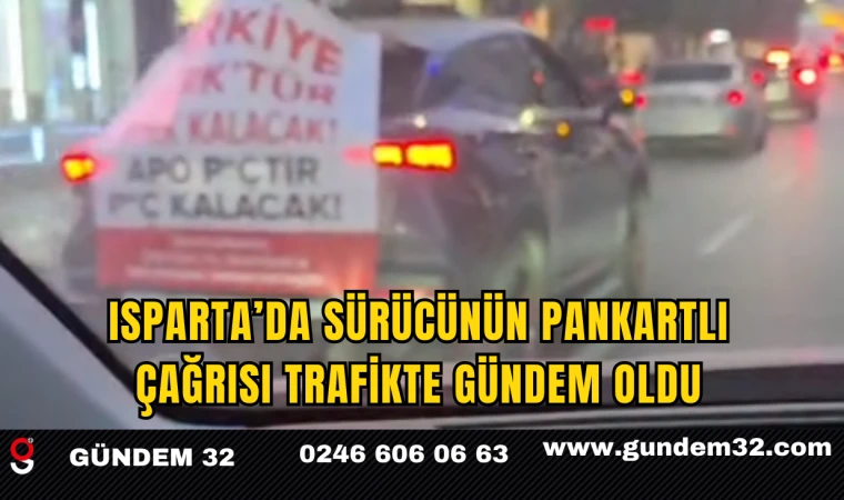 Isparta’nın Mimar Sinan Caddesi’nde seyir halindeyken aracına astığı pankartla dikkat çeken sürücü Celalettin Gürdal, trafikteki diğer sürücülere kornayla destek verme çağrısında bulundu.