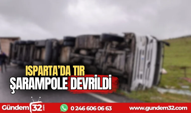 Isparta – Antalya karayolunda seyir halindeki Tır, kontrolden çıkarak şarampole devrildi.