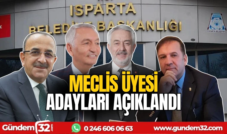 Yerel seçim takvimi işlerken aday başvuruları evraklarının seçim kurullarına teslim süresi bugün sona erdi. AK Parti, Cumhuriyet Halk Partisi, Milliyetçi Hareket Partisi ve İYİ Parti Isparta Belediyesi Meclis üyesi adaylarının listesini il seçim kuruluna teslim etti. Teslim edilen listeye göre partilerin Isparta Belediyesi Meclis üyesi adayları şu şekilde:
