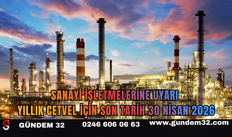 Bu kapsamda, sanayi işletmelerinin 2025 yılına ait Yıllık İşletme Cetvellerini en geç 30 Nisan 2026 tarihine kadar sisteme yüklemeleri gerekiyor.