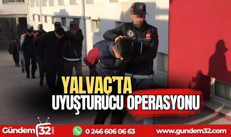 “Yalvaç Cumhuriyet Başsavcılığı koordinesinde, Narkotik Suçlarla Mücadele Şube Müdürlüğü ve Yalvaç İlçe Emniyet Müdürlüğü görevlilerince; Çınaraltı mevkiinde bulunan bir kahvehaneye yapılan operasyon neticesinde gözaltına alınan “2 şüpheli uyuşturucu veya uyarıcı madde ticareti” suçundan TUTUKLANMIŞTIR. Operasyon kapsamında; bir miktar uyarıcı madde ile 2 adet ruhsatsız tabanca ve 6 adet fişek ele geçirilmiştir.